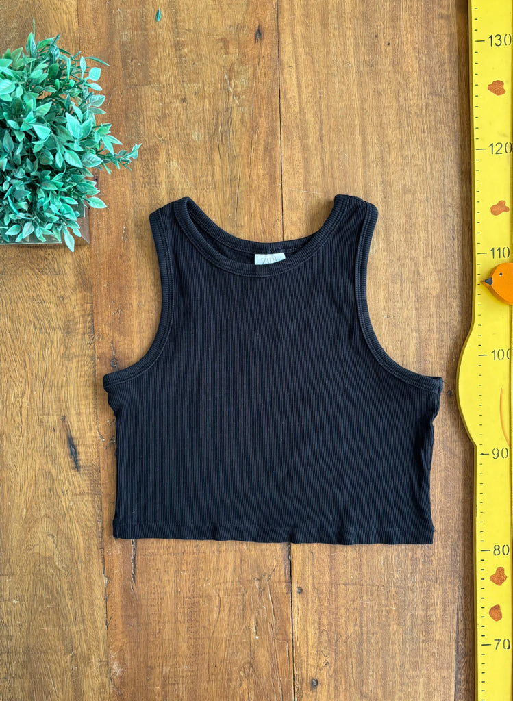 Regata Cropped Infatil Zara com Nervuras Preto TAM 9 - 10 Anos 140cm