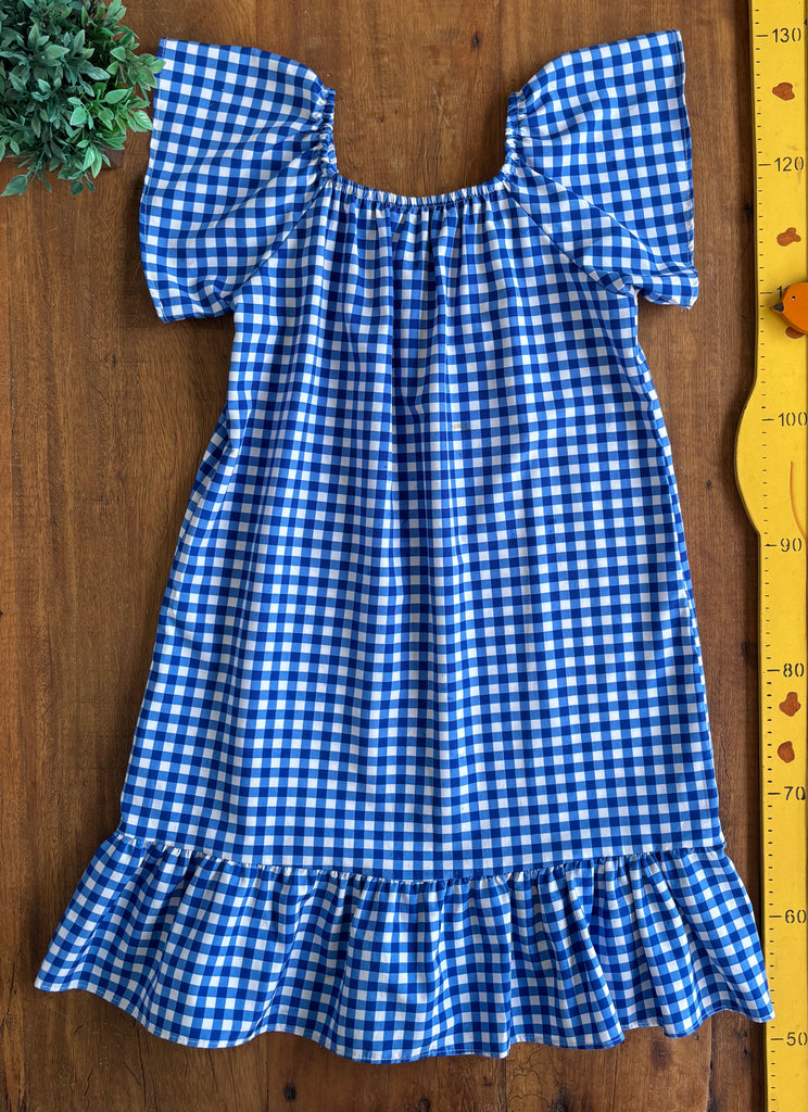 Vestido Infantil Xadrez Azul Linda Cor TAM 12 Anos