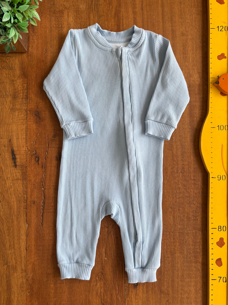 Macacão Bebê Coruja Zíper Azul Canelado Algodão Pima Passalinho TAM 3 a 6 Meses