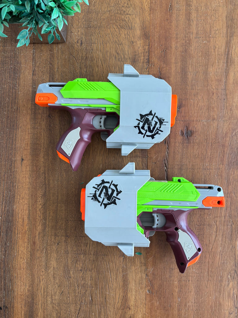 2 Lançadores Nerf Side Strike Zombie com 4 Dardos (cada) TAM 15 X 22 cm