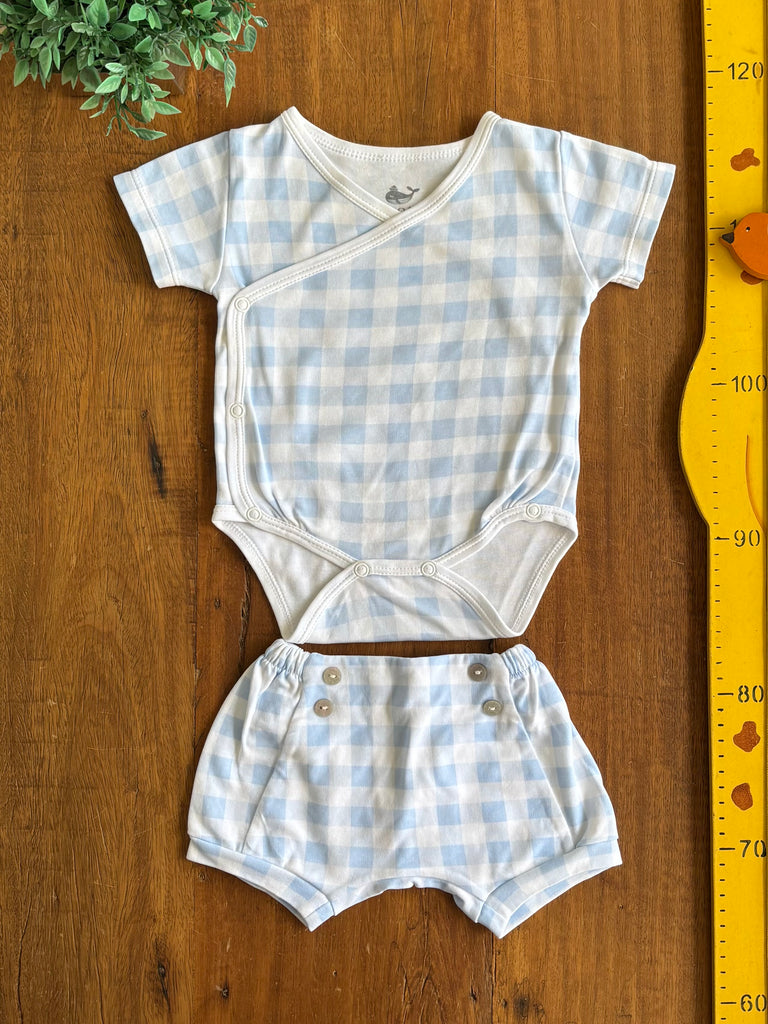 Body Kimono Xadrez e Shorts 100% Algodao Pima TAM 2 a 4 Meses 62 cm
